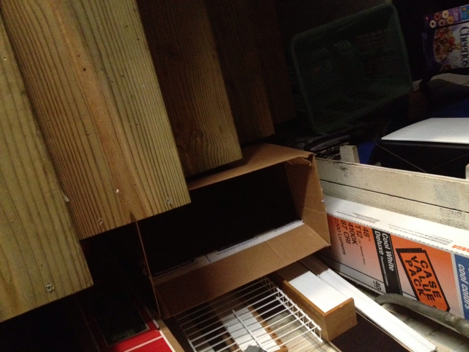 There is this narrow space between our basement steps and the wall. I got my hands on this tall skinny cardboard box and it fits perfectly there.